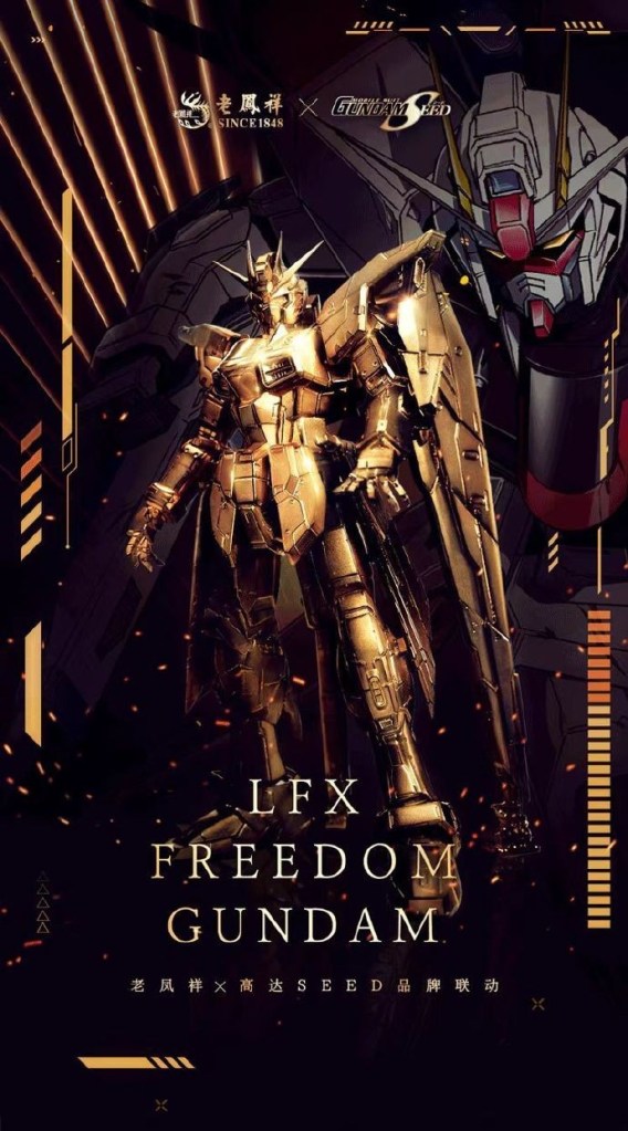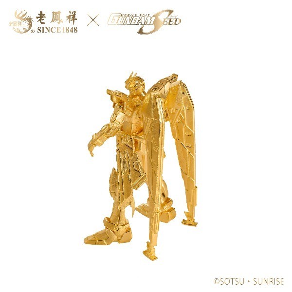 7月26日萬代南夢宮宣布,老鳳祥×鋼彈SEED跨界呈現的「黃金自由鋼彈」即將上線,售價情況也一併公佈,其中1000g自由鋼彈金像售價88萬人民幣,全球限量10件;100g自由鋼彈金像售價89800人民幣,全球限量199件。這兩款鋼彈將於7月29日上午10時開啟預售,訂金均為5000人民幣。