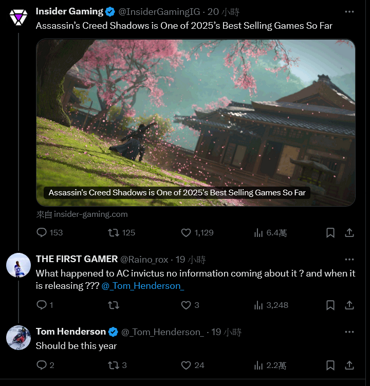 知名爆料人湯姆亨德森在X被詢問《刺客教條:代號invictus》的最新情報時,表示這款作品應該會在今年推出。