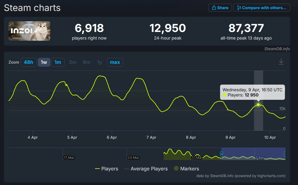 根據媒體統計《inZOI》的玩家維持率十分低,整體流失率高達83%。雖然大多數遊戲在上線數星期內都會出現一定程度的用戶流失,但《inZOI》的快且大速跌幅,遠超常規水準。