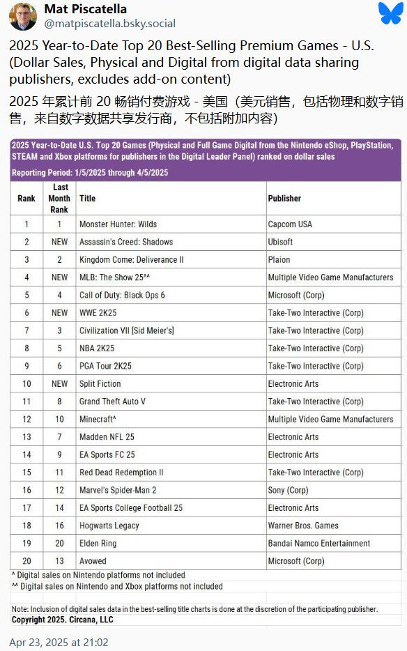 而且在發售四個月後,它依舊穩穩佔據2025年度銷售冠軍的位置。