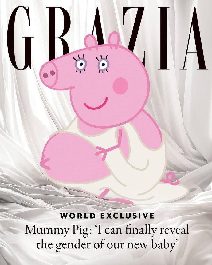 《小豬佩奇》豬媽媽三胎孕期照登上時尚雜誌《Grazia》,並接受雜誌訪問。