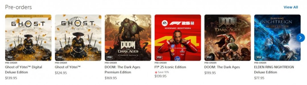 根據多地區數據顯示,雖然《羊蹄戰鬼》標準版定價70美元,但更昂貴的豪華版才是玩家主要購買對象。經核查美國、英國、澳洲等地區的PS商店,《羊蹄戰鬼》豪華版預購量均領先標準版,即將發售的《毀滅戰士:黑暗時代》也呈現相似趨勢。