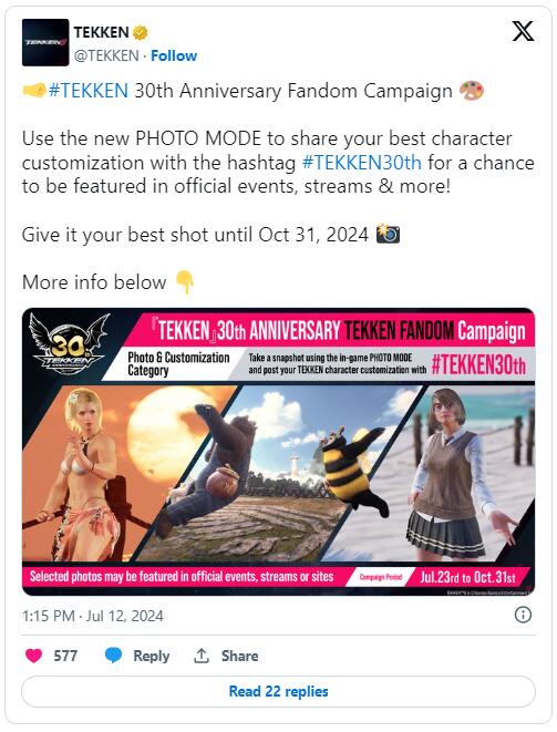 在最近的一次直播中,《鐵拳8》的開發團隊成員透露,在莉迪亞加入角色陣容之前,《鐵拳8》的下一次更新的1.06 將為遊戲添加一個拍照模式,這個拍照模式已於今年稍早確認正在製作中。