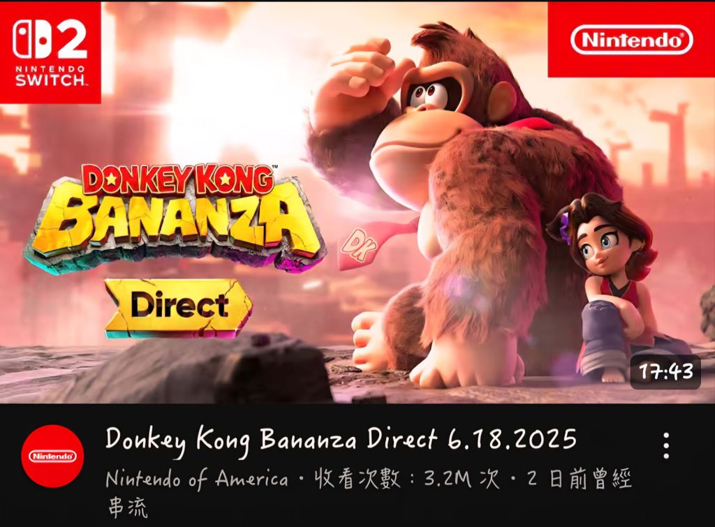 僅用時一天,任天堂《咚奇剛:蕉力全開》發表會的觀看數就已經超越PS的State of Play。